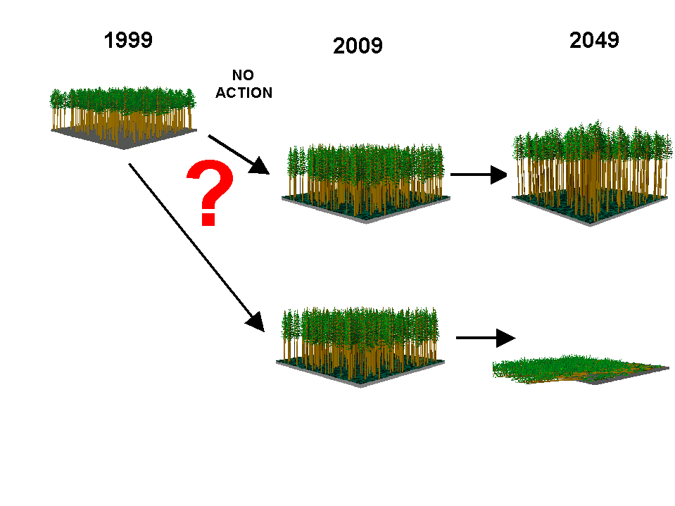 silvicultural treatments such as thinning may be needed to reduce