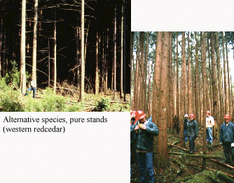 Species other than Douglas-fir can be grown productively in pure (single species) stands. For example, western redcedar can be grown in pure stands and will produce timber volumes comparable to Douglas-fir by age 50 on moderate and highly productive sites (Figure 19). Red alder can also be grown in pure stands or mixed with conifers (Figure 20).