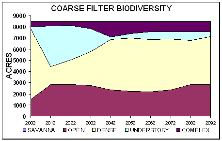 The above chart displays the changing proportion of structural stage (Oliver 5c) for the landscape through time. This chart was extracted from the Toggle companion spreadsheet. Click on the image to view a larger image. |